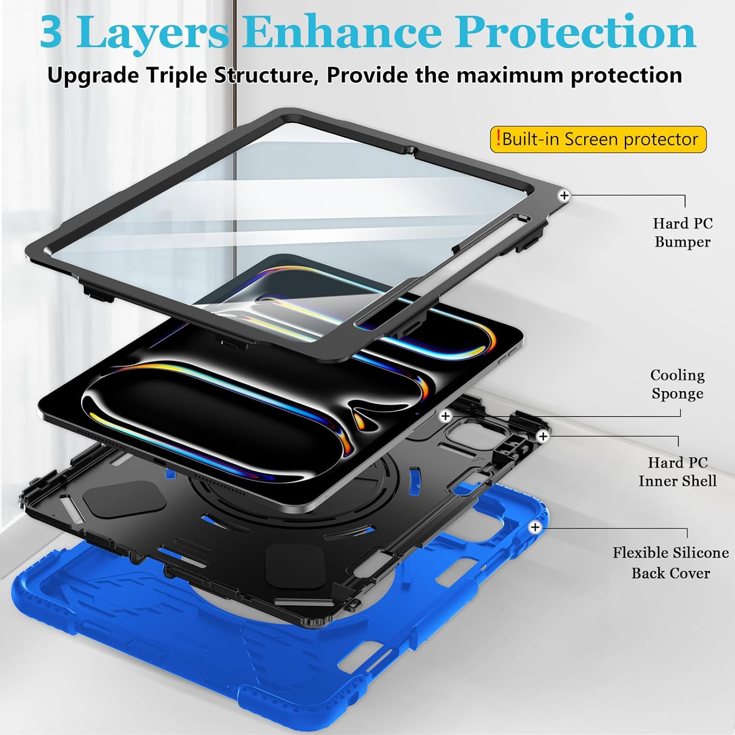 Bescherm je tablet optimaal met deze stevige, kindvriendelijke hoes, speciaal ontworpen voor de iPad Air 4 / Air 5 (2020–2022) en iPad Pro 11 inch (2018, 2020, 2021, 2022).