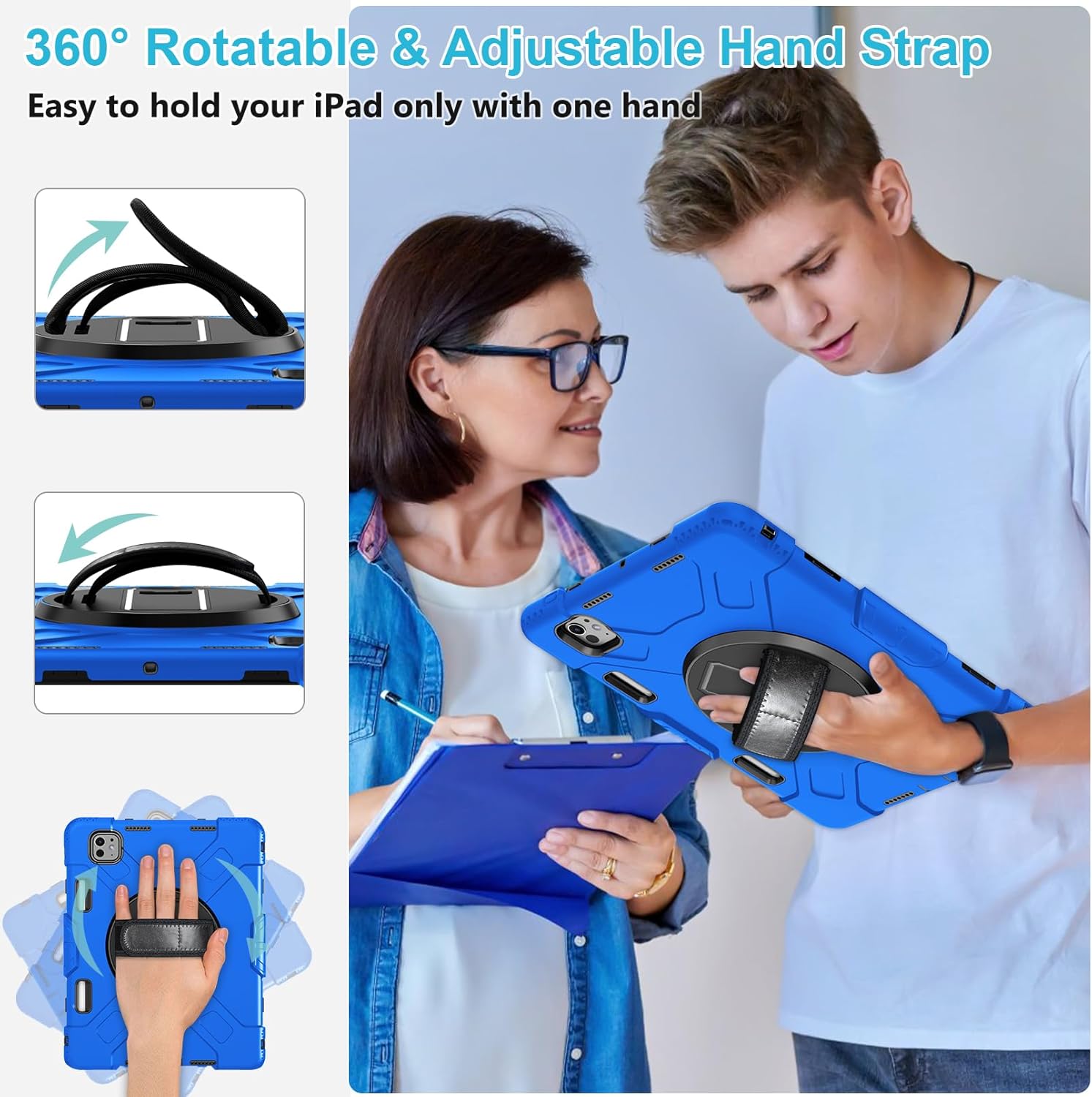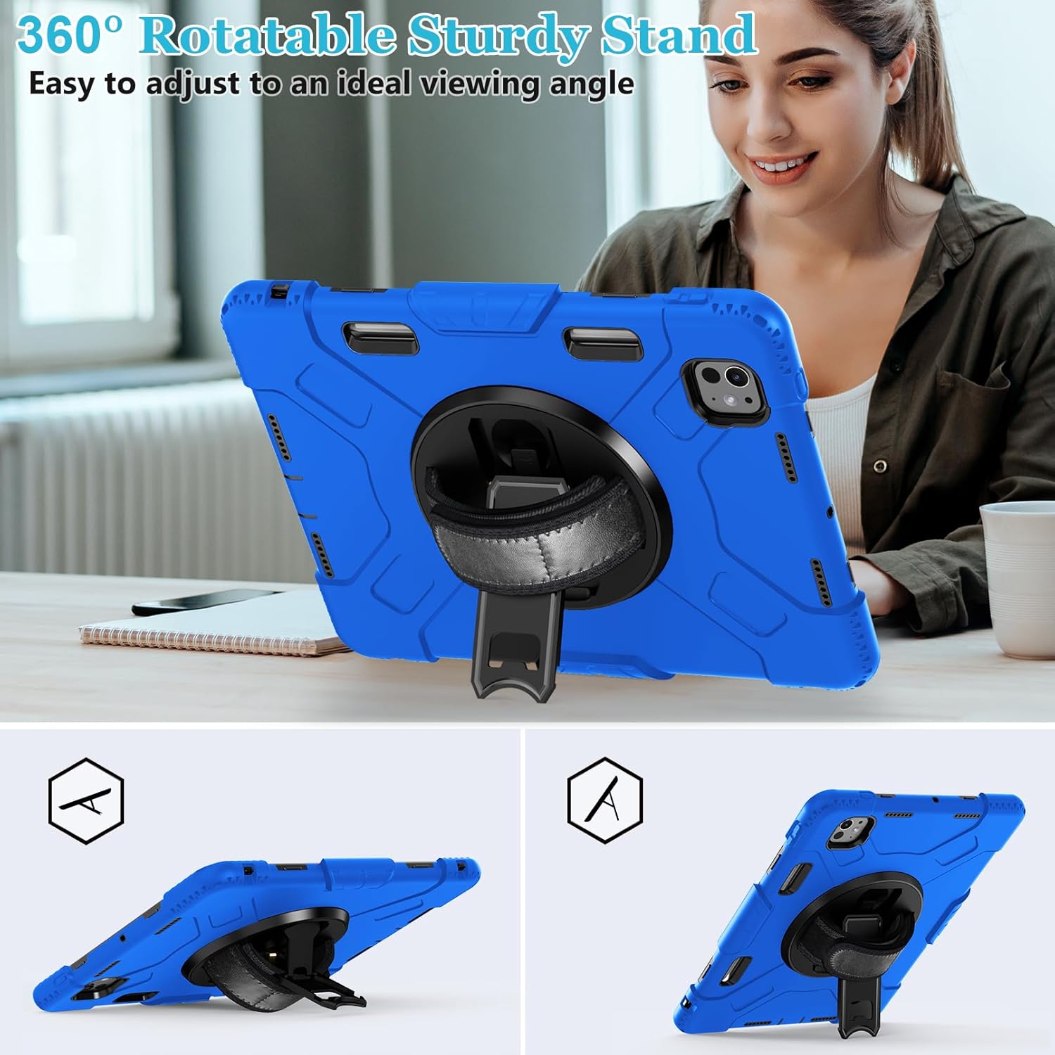 iPad Air 4-5 en iPad Pro 11 (2018–2022) – 360° Draaibare Handgreep – Schokbestendig Siliconen Hoesje